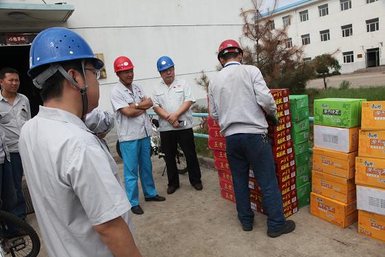 7月22日,公司黨委副書記、工會主席霍紹發(fā),工會副主席周海輝一行,為檢修一線的職工送去西瓜、綠茶等防暑降溫慰問品。