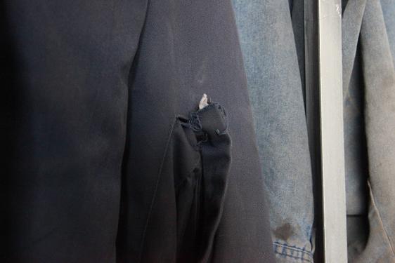 在這間“衣帽間”里,有的衣服破了幾個洞,然后又拿補丁補了繼續(xù)穿;有的衣服那個臟亂,簡直不想拿手觸碰;有的衣服掉了扣子、壞了拉鏈,還有那些帽子,不知是帽子碰到了機器,留下痕跡,還是機器的零件掉了下來,砸到了帽子,砸出了一道道的痕跡。